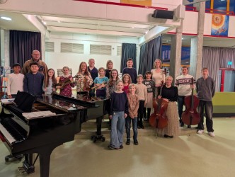 Schülerinnen und Schüler der Cello- und Klavierklasse der Musikschule der Stadt Lünen.