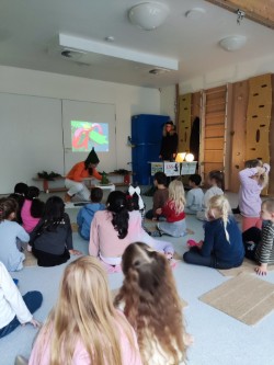 Drehbuchautorin Katrin Bühring und der Diplom-Sprachheilpädagogin Maike Freiberg fand eine interaktive „Erlebnis-Lesung“ für die Vorschulkinder der Einrichtung statt.