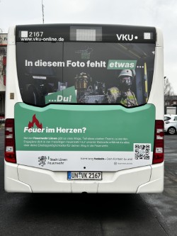 Lünen. Die Feuerwehr Lünen setzt im Stadtbild ein unübersehbares Zeichen für das Ehrenamt. Seit dieser Woche tourt ein Linienbus der Verkehrsgesellschaft Kreis Unna (VKU) mit einer auffälligen Heckbeklebung durch das Stadtgebiet. Die Botschaft richtet sich direkt an potenzielle neue Einsatzkräfte für die Freiwillige Feuerwehr.