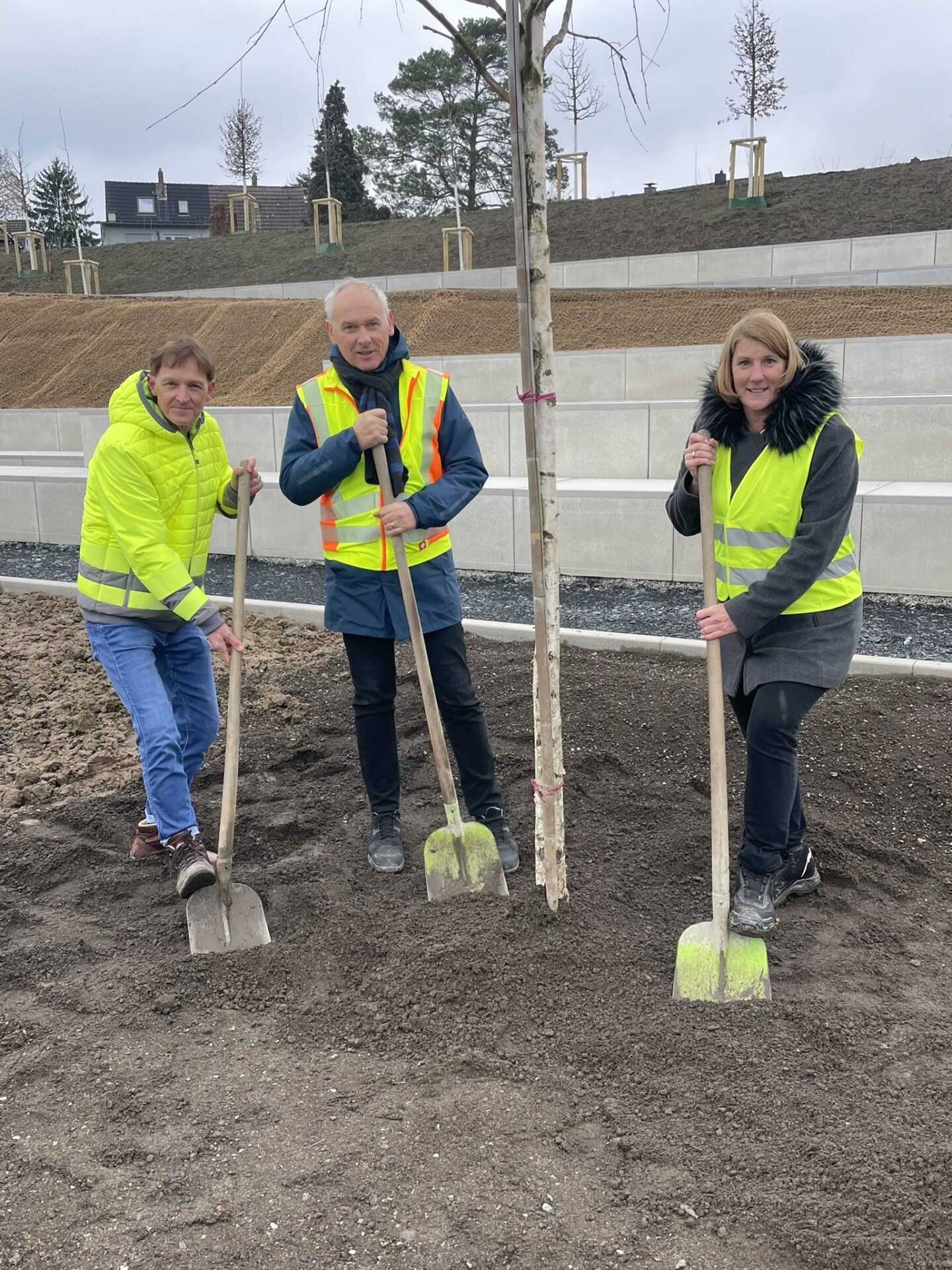 Lünen. Mit der symbolischen Pflanzung einer Sandbirke (Betula pendula) hat Bürgermeisterin Martina Förster-Teutenberg am Freitag, 13. Februar, auf dem Gelände des künftigen Landschaftsparks Viktoria ein sichtbares Zeichen für den Wandel des ehemaligen Industrieareals gesetzt. Unterstützt wurde sie vom Technischen Beigeordneten Arnold Reeker und vom Fachbereichsleiter Stadtgrün Jürgen Arendes.